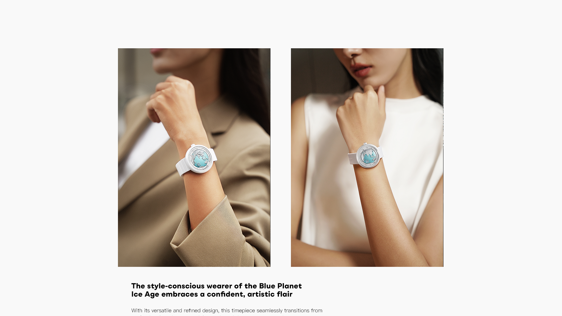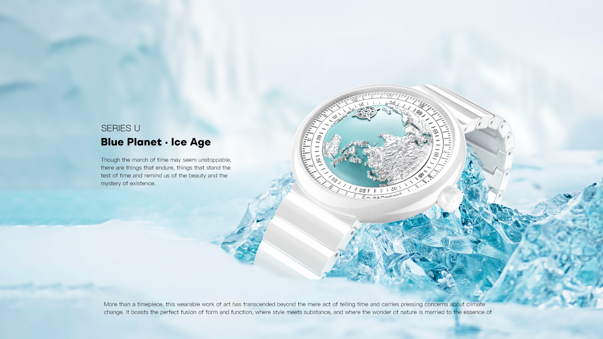 An exquisite timepiece that exudes sophistication and grace, while paying homage to the beauty and mystery of the glaciers. The Blue Planet · Ice Age represents the culmination of years of evolution for the U Series, dedicated exclusively to women.