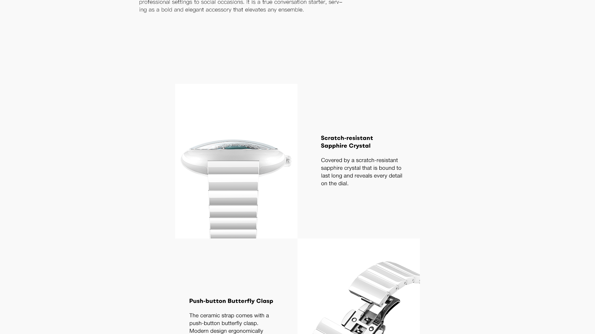3. The ceramic strap comes with a push-button butterfly clasp. Modern design ergonomically frees every move on your wrist.