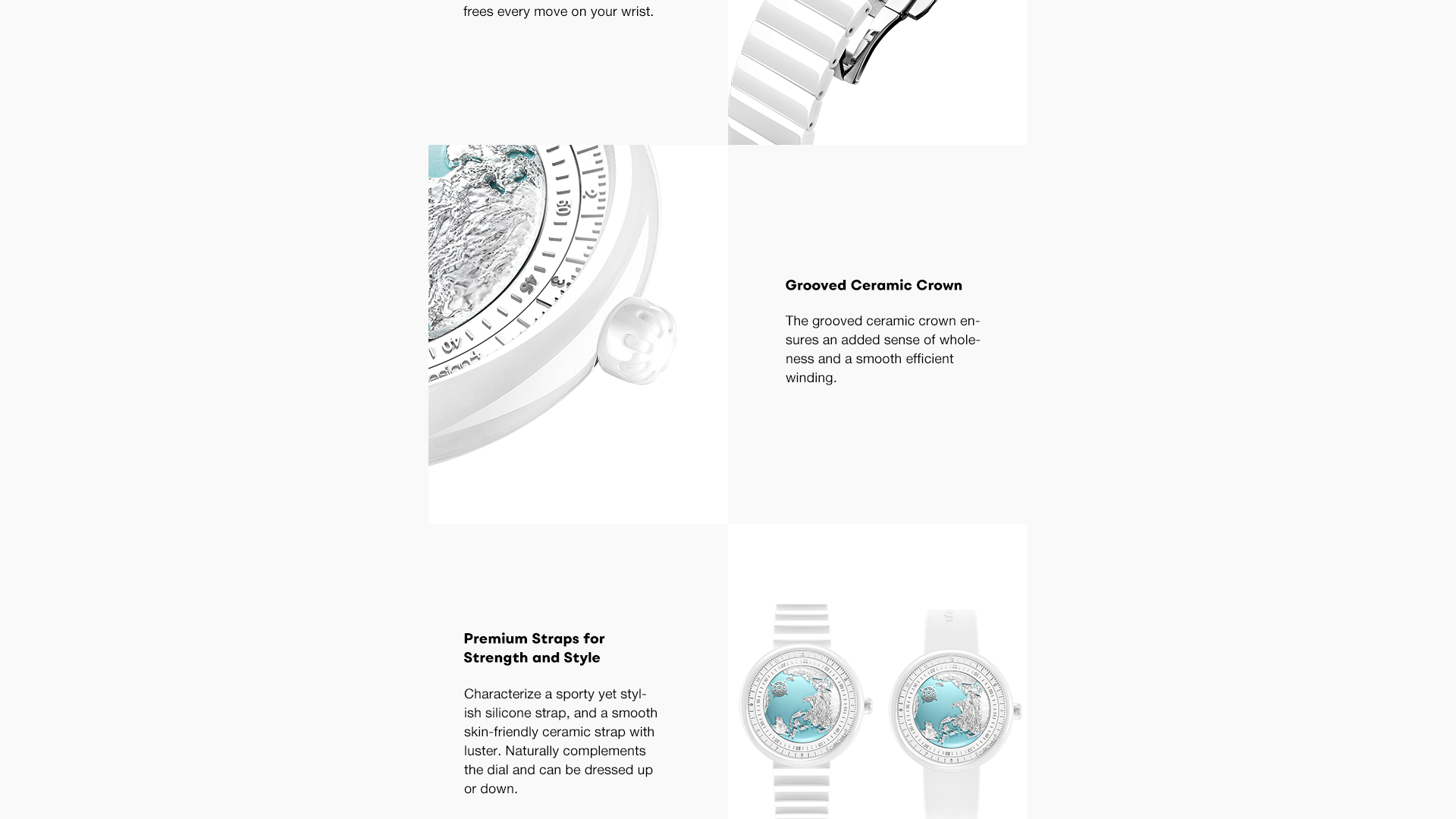 4. Characterize a sporty yet stylish silicone strap, and a smooth skin-friendly ceramic strap with luster. Naturally complements the dial and can be dressed up or down.